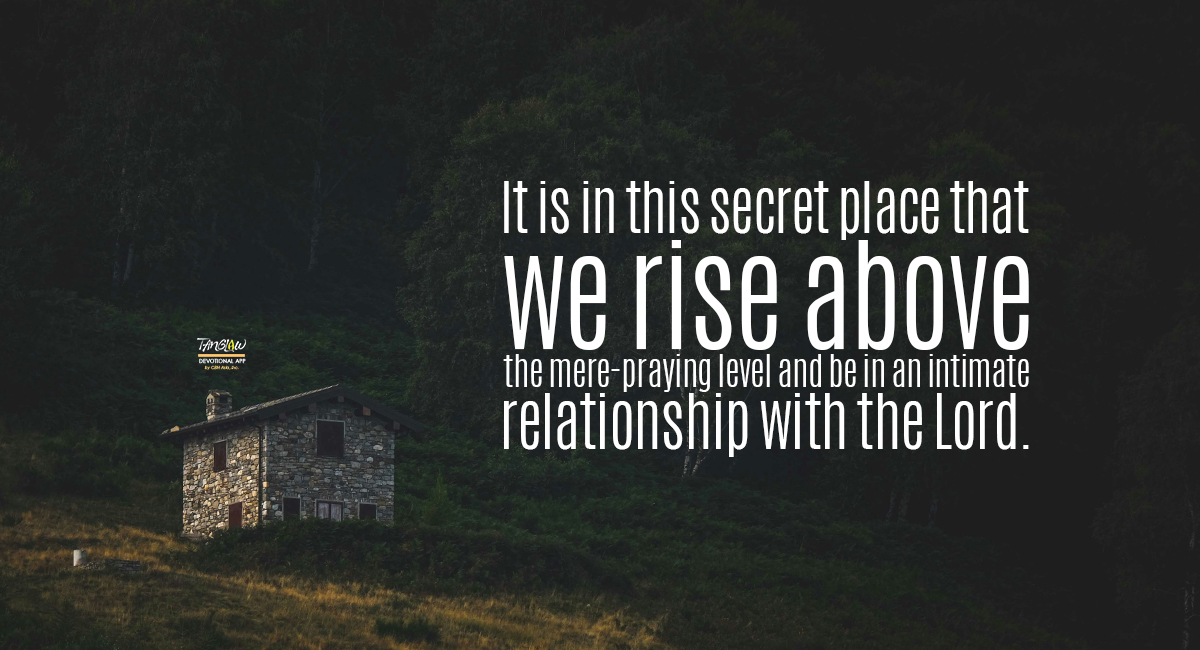 It is in this secret place that we rise above the mere-praying level and be in an intimate relationship with the Lord that genuinely changes our lives. There, we pour our hearts, bring our requests, and receive His peace and perspective. Here, we learn to trust Him as a refuge and a fortress, being confident that He is with us in each trial and the storm.