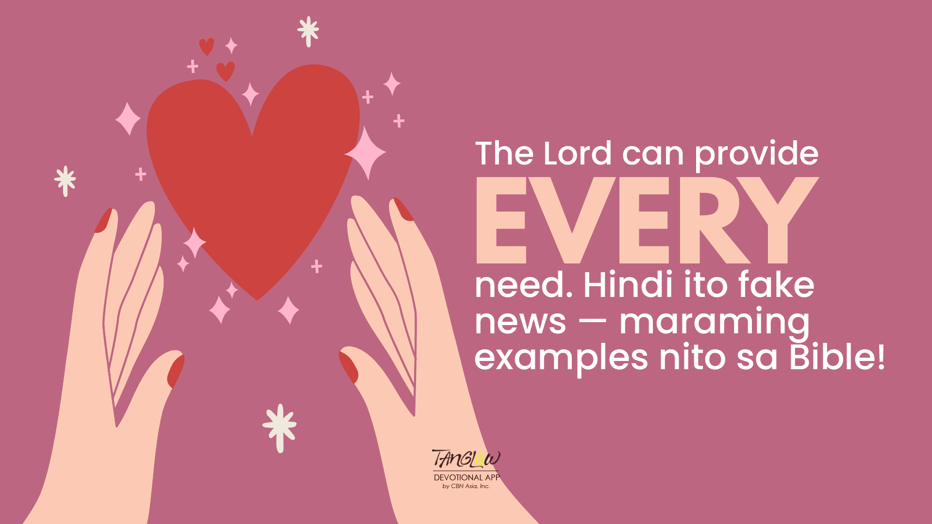 In your trying times, napaisip ka na ba kung totoong kaya ni Lord na ibigay ang lahat ng pangangailangan natin? Ayon sa psychologist na si Abraham Maslow, every human has five kinds of needs. Pinaka-basic ang physical needs tulad ng food, clothing, and shelter. Kapag na-fulfill na ang needs na ito, saka mo lang mabibigyan ng pansin ang higher-level needs tulad ng safety, love and belonging, at self-actualization o paghahanap ng purpose mo sa buhay. Paano mo nga naman iisipin ang mga iyon kung hindi mo nga alam kung paano mo mababayaran ang renta sa bahay, o kung saan manggagaling ang susunod mong kakainin?