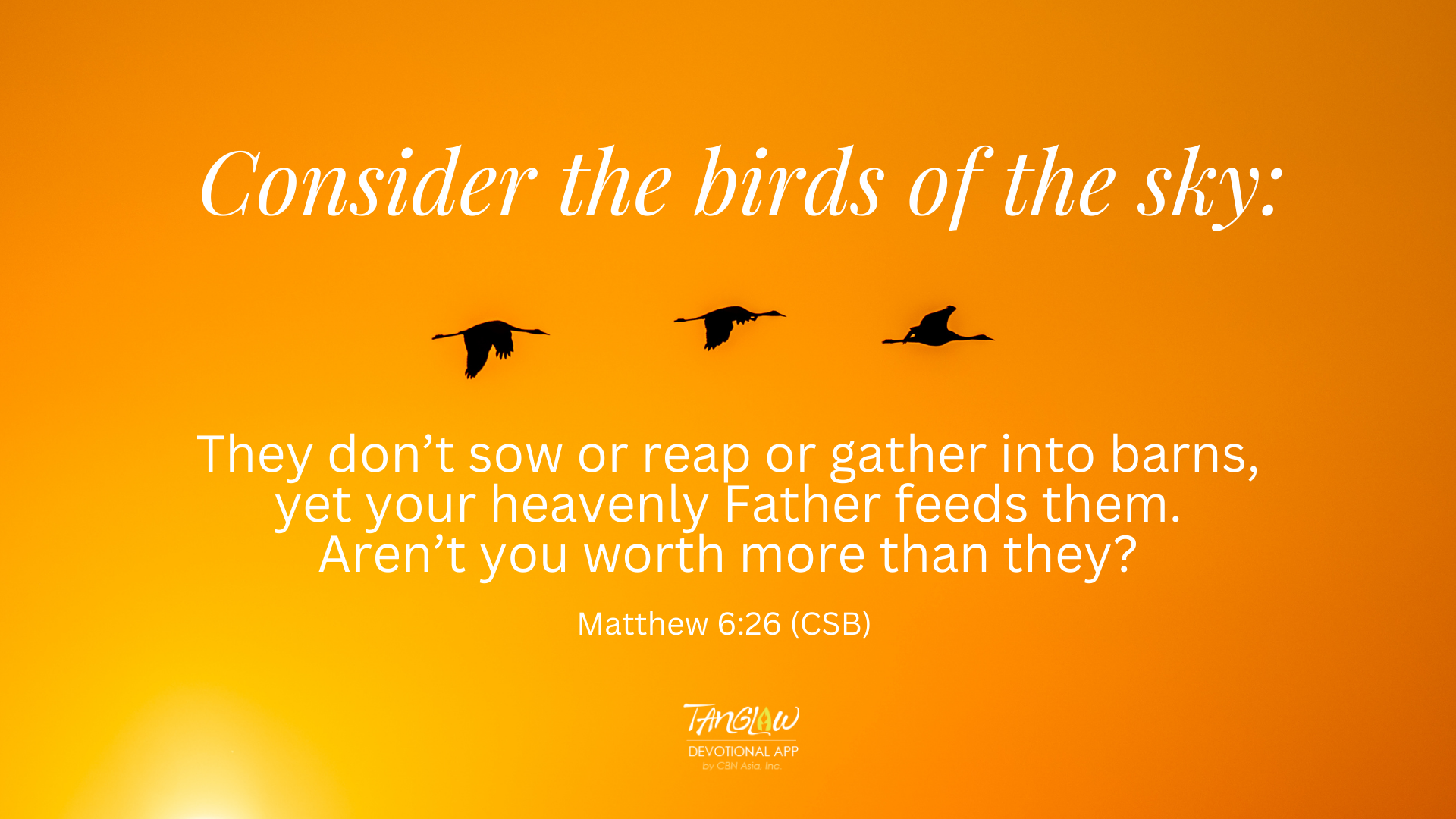 The God who made the universe has His eye on the sparrow. Imagine that! God is intimately aware of what happens to even the smallest, seemingly insignificant parts of His creation. At kung napapansin Niya ang pinakamaliit at pinaka-ordinaryong maya, mas higit naman tayong importante sa Kanya. Sabi nga ni Jesus, “You are more valuable to him than many sparrows” (Matthew 10:31, TLB).