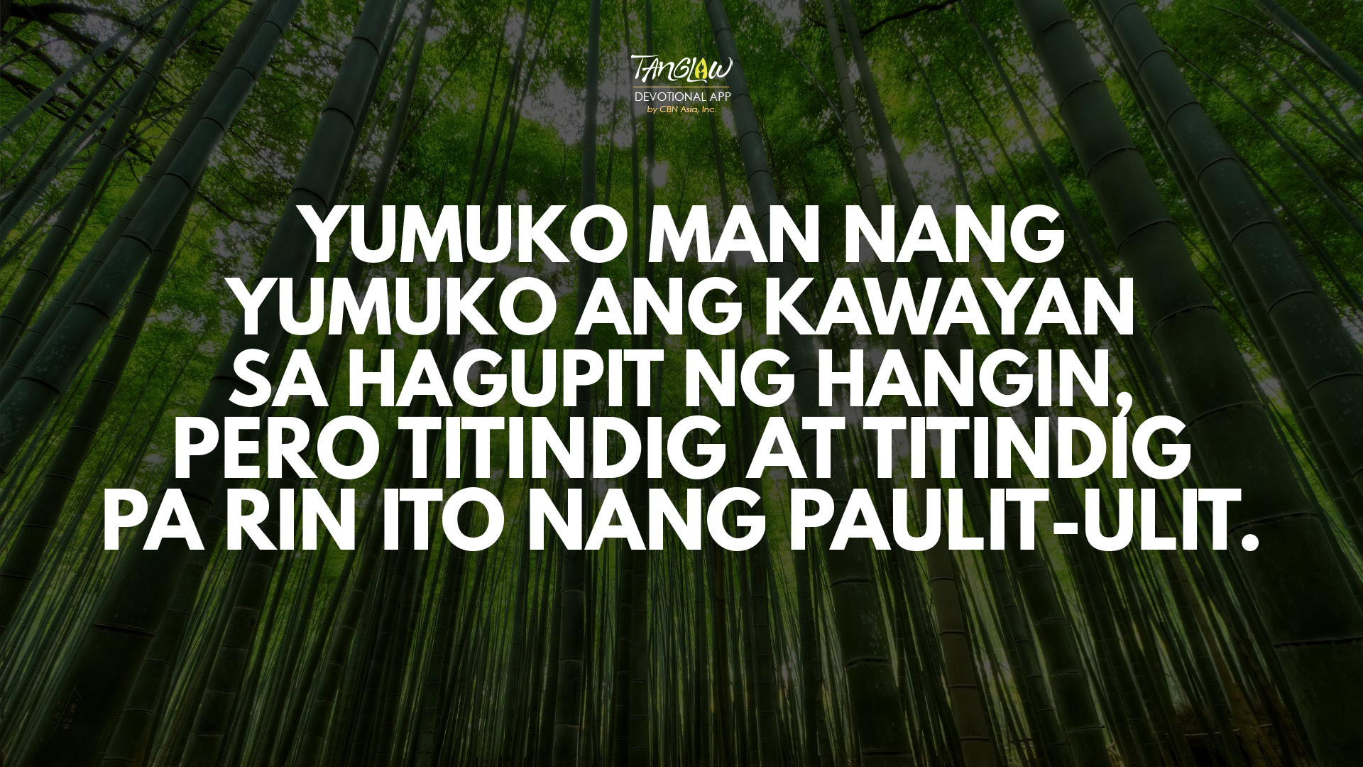 Pero ang sabi sa Proverbs 24:16 (NIRV), “Even if godly people fall down seven times, they always get up.” No one is exempt from troubles, but God promises a rebound. If we trust in God, we can expect Him to be with us as we pass through the storm, protect us while we are in the middle of it, and lead us out of it. Mabuwal man tayo nang pitong ulit, pero ititindig at ititindig tayo ng Diyos nang paulit-ulit.