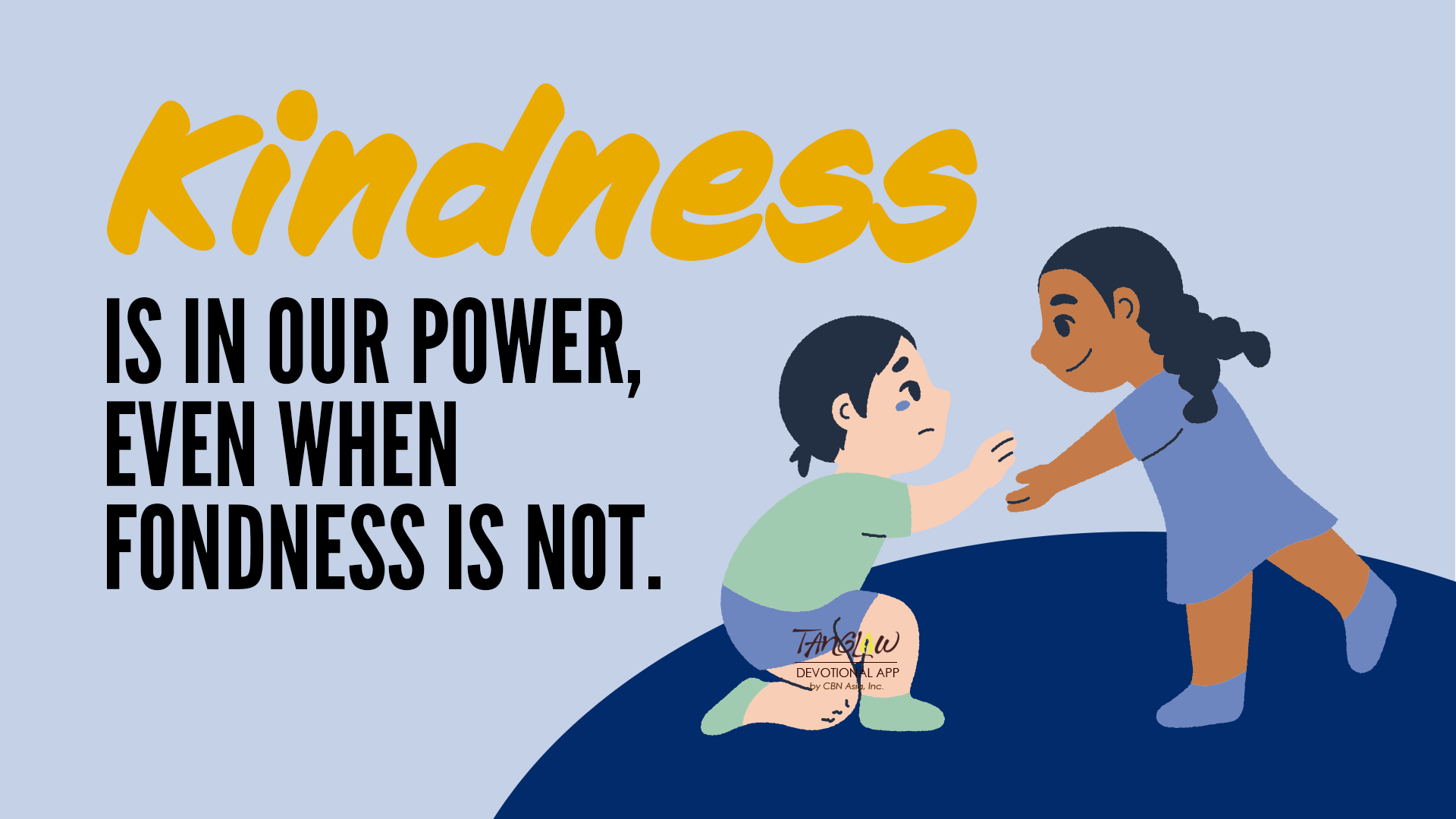 This is a reminder for us that being quiet and forgiving show a deeper strength. Ang pagsasalita nang mahinahon ay nagpapakalma ng isang mainit na sitwasyon. Lagi rin nating isaisip ang pag-ibig ng Diyos. Alalahanin natin na tayo’y minamahal ng Diyos at pinatawad Niya ang ating mga kasalanan. Ang katotohanang ito at ang biyaya ng Diyos sa atin ay sapat upang magpatawad at magpakita ng grasya sa iba.