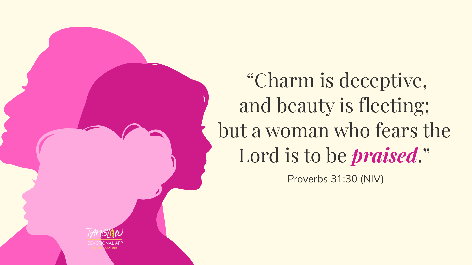 Physical beauty fades. Balang-araw, kukulubot ang ating balat, manghihina ang mga buto o mamumuti ang ating buhok. Habang nagkaka-edad tayo ay part ng natural process ang pag-age ng ating katawan. Tumitingin ang tao sa panlabas na anyo, pero ang Diyos ay tumitingin sa ating puso (1 Samuel 16:7). Mas mahalaga sa Diyos ang kagandahan ng ating kalooban at pagkilala sa Kanya. “Charm is deceptive, beauty is fleeting; but the woman who fears the Lord is to be praised” (Proverbs 31:30, NIV). Naniniwala ka ba sa katotohanang ito? Sana ay sa muli mong pagtingin sa salamin, unahin mong makita na ikaw ay precious in God’s eyes, fearfully and wonderfully made.